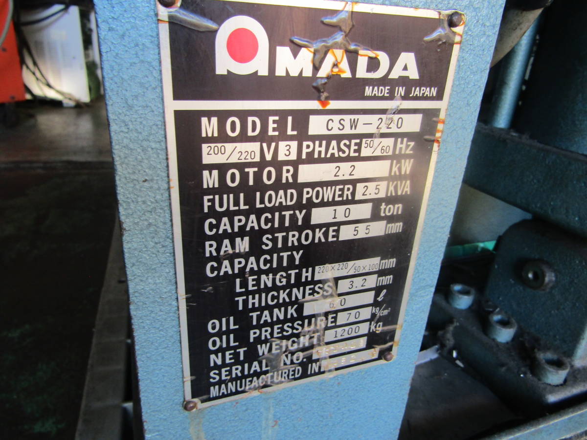 商品説明アマダのコーナーシャーです。廃業した工場からの引き取り品です。